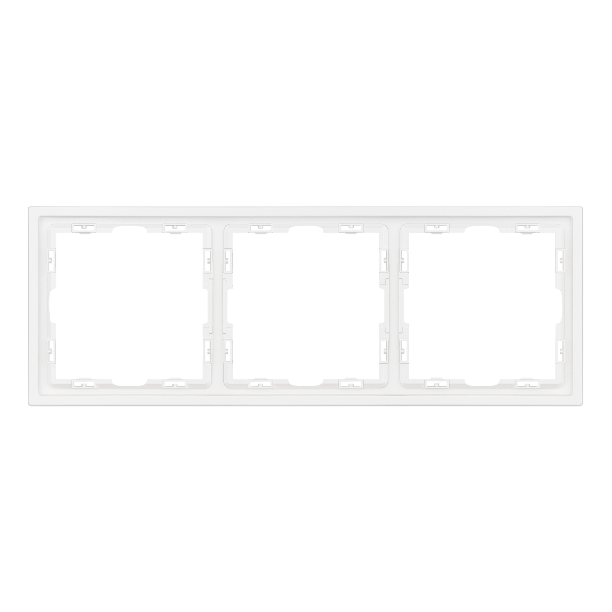 Рамка пластиковая на 3 поста, под встраиваемый механизм. Цвет - белый, с Soft-Touch покрытием. Среднего уровня герметичности IP20. Ориентация монтажа горизонтальная.
