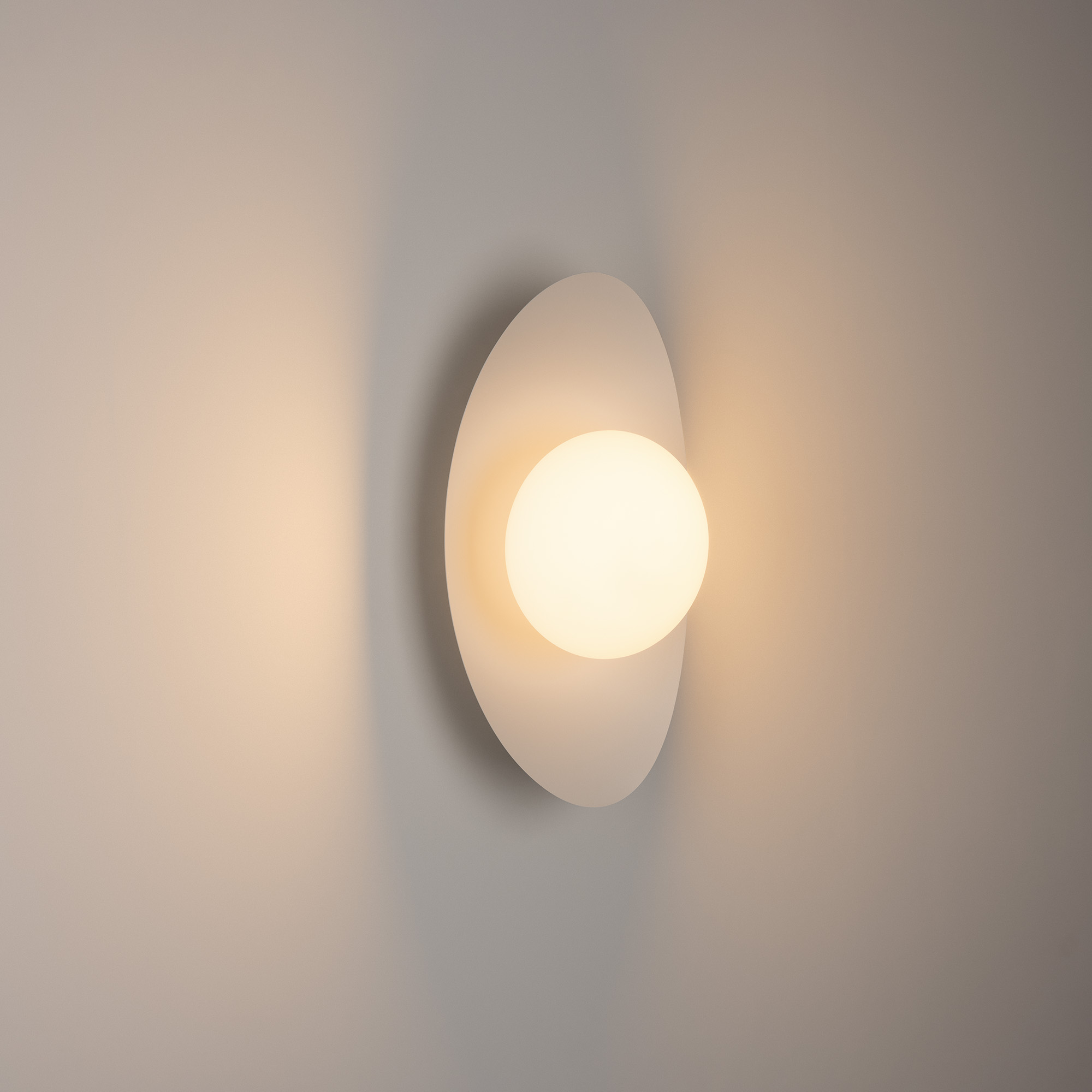Декоративный настенный светильник. Мощность 6 Вт, св. поток 325-340 лм, 50-52 лм/Вт, теплый 2700 K,теплый 3200К, дневной 4000 K (переключаются) CRI>92, угол 150°, напряжение питания 230 В. Фигурный корпус из алюминия белого цвета, экран из матового стекла, степень защиты IP20. Размер: габариты световой части: Ø145x70 мм, габариты чаши: Ø110 x 42 мм. Монтаж накладной. Встроенный блок питания: 12В DC, 0,75 А, пульсация <2%. Встроенный диммер TOUCH-DIM.